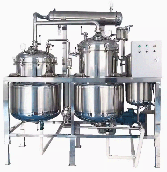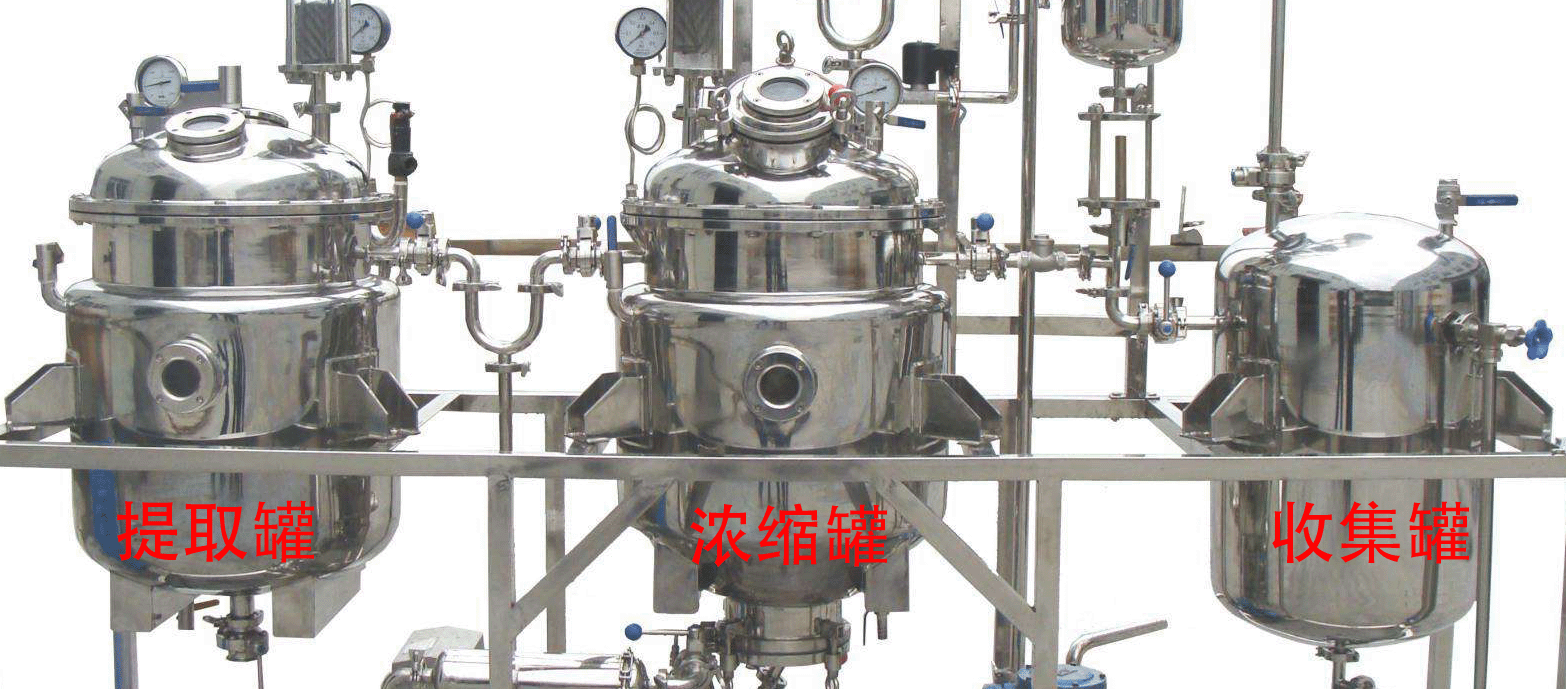 用夾套加熱,(直通蒸汽加熱僅水提及提取芳香油時用)經過設定時間煮提后,即可將較高溫度的提取液連續從提取罐底部經過濾網粗過濾